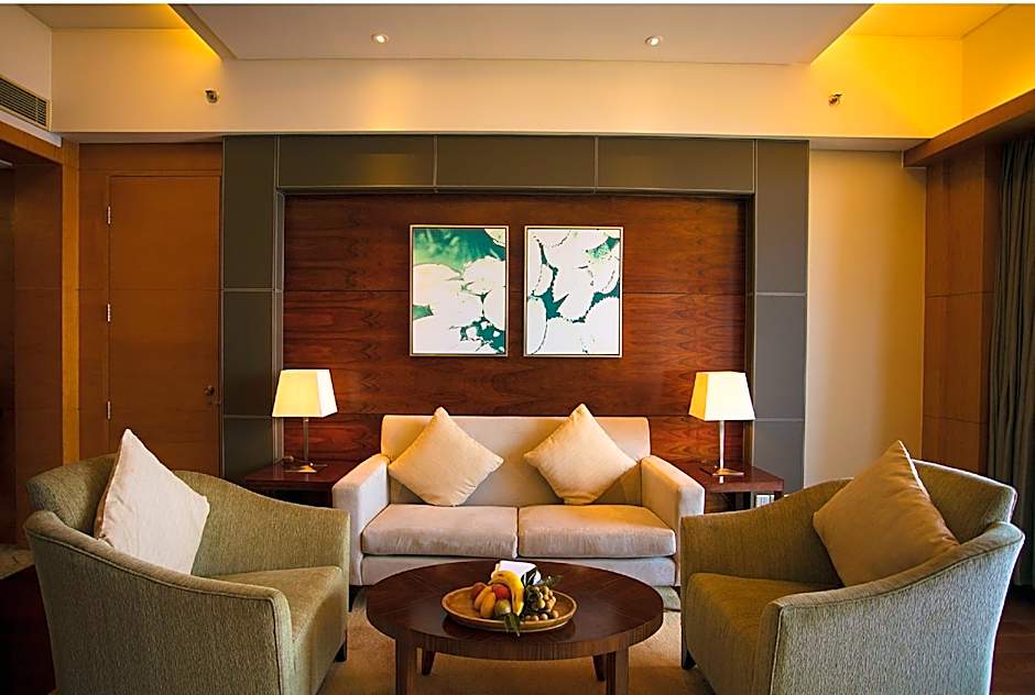 This suite features a seating area, flat-screen TV and electric kettle. Separate living room with a sofa and dining table are available. Club access is featured.